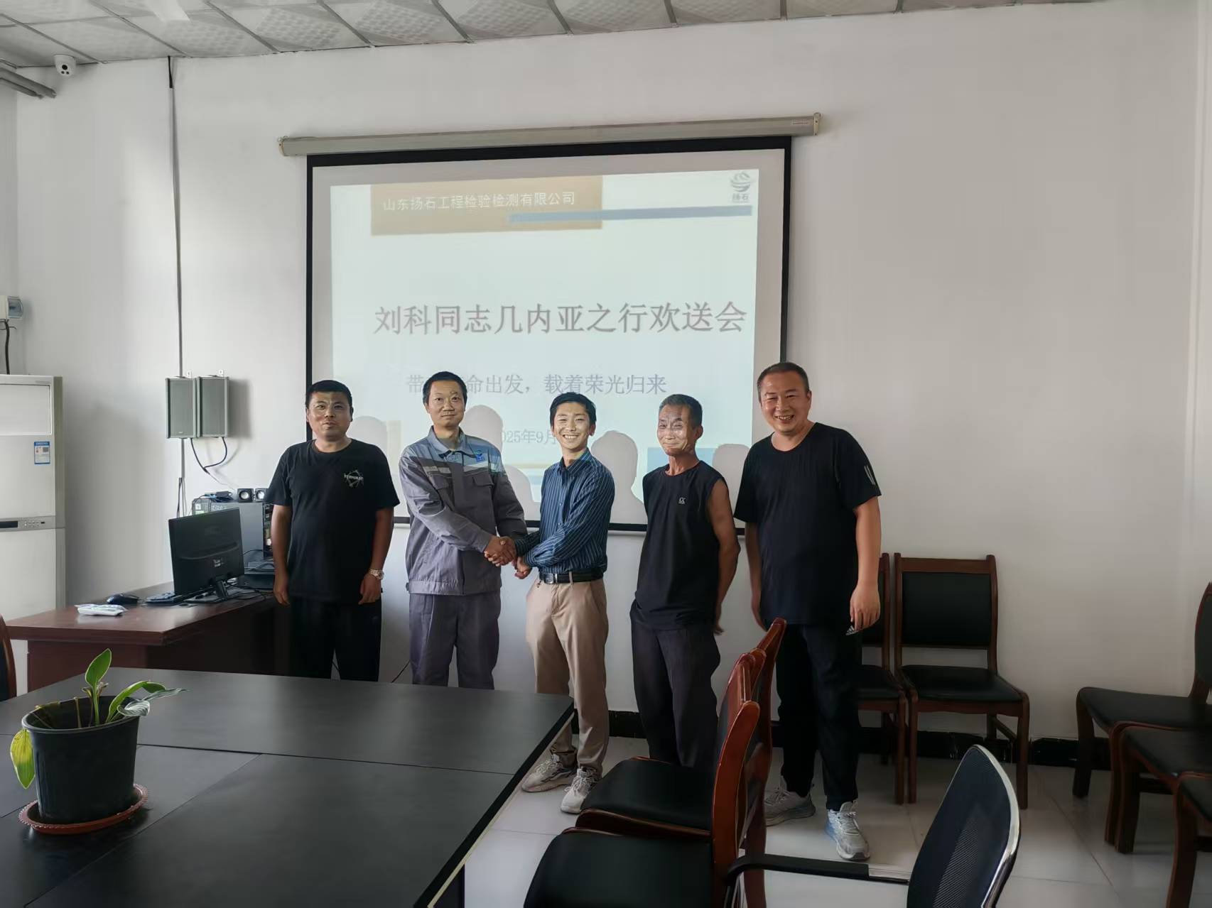 2025年9月25日,山東揚(yáng)石工程檢驗(yàn)檢測有限公司就劉科前往幾內(nèi)亞共和國檢測項(xiàng)目工作之行,舉行歡送會,劉科同志...